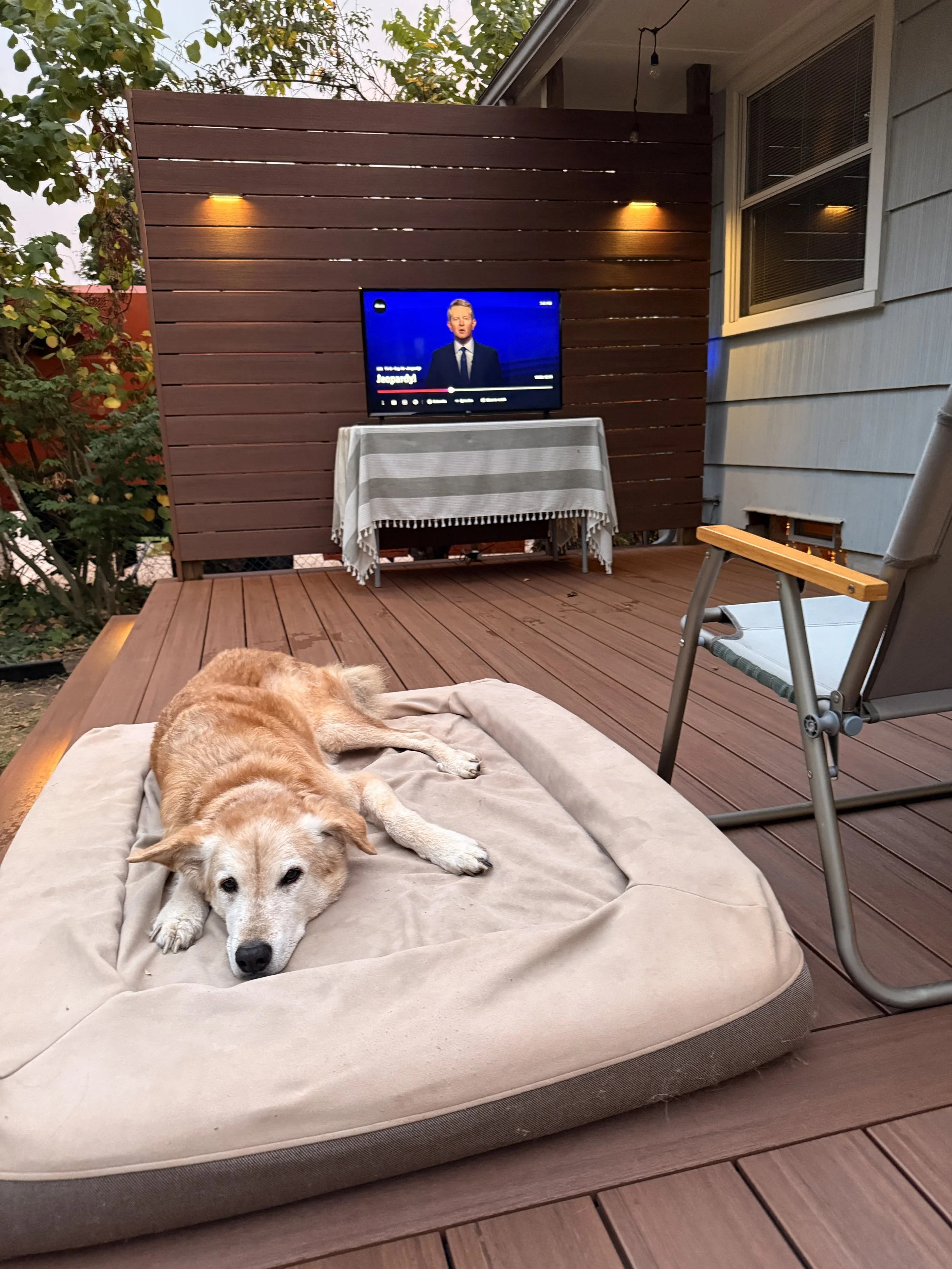Our house in Ann Arbor stays between 66 and 68 degrees, one of the many upgrades from my bachelor life in 2016. When the weather cooperates, we love watching Jeopardy! and dining al fresco on the deck.
