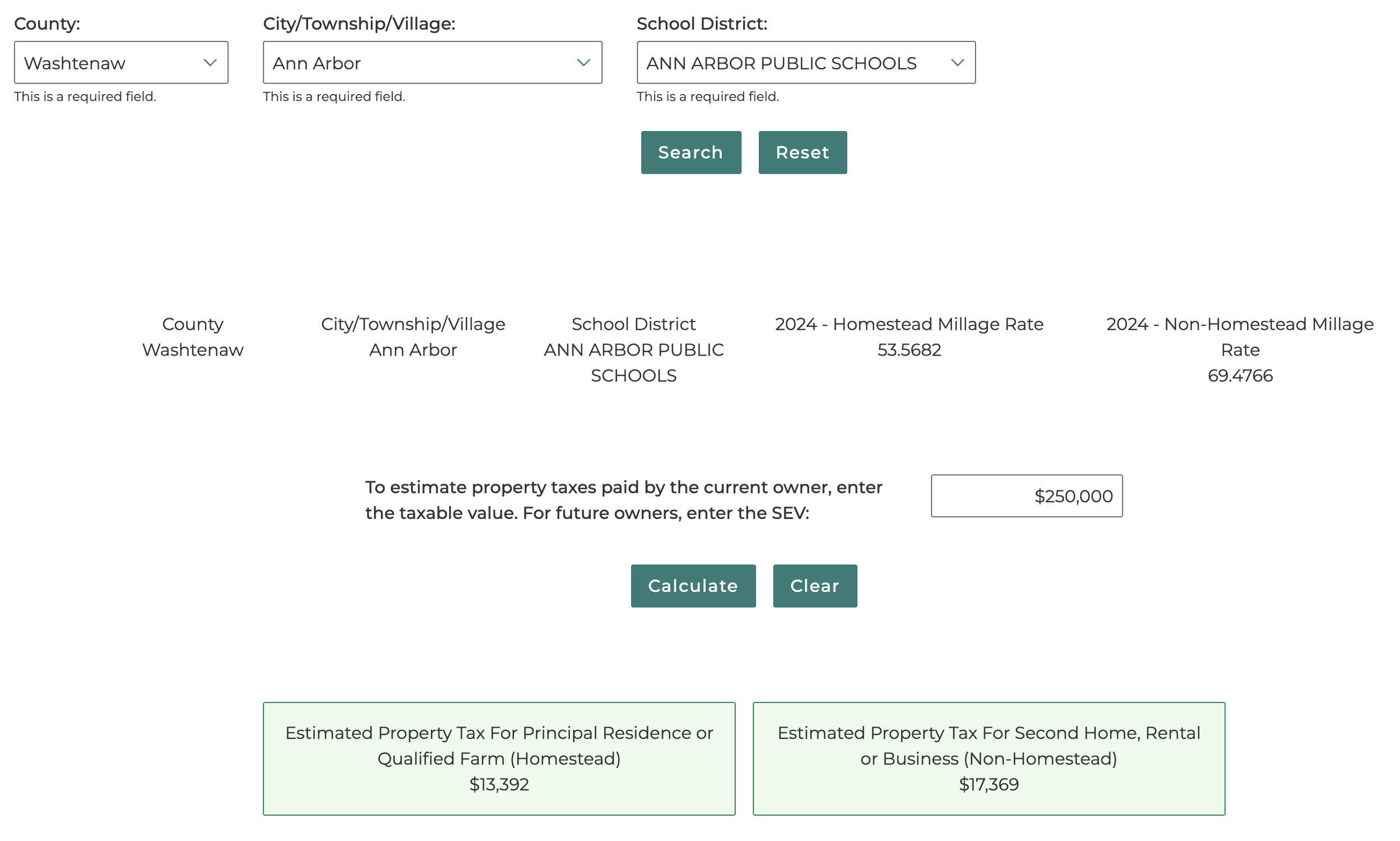 In short, looking at what the previous owners were paying in taxes isn’t all that helpful. This link is perfect for property tax assessment and doing research on different cities and townships in Washtenaw County.